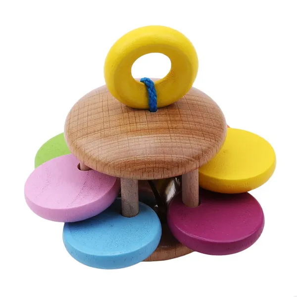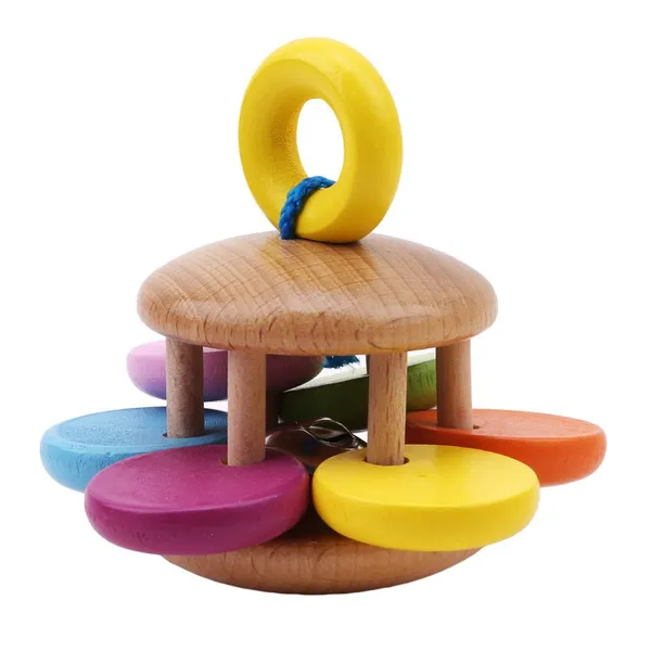 Decription: Promoting kids' coordinate ability. Developing kids' intellegence development. Inspiring kids' activities interests. Material: Wood. Package Includes: 1 x Handle Bellb