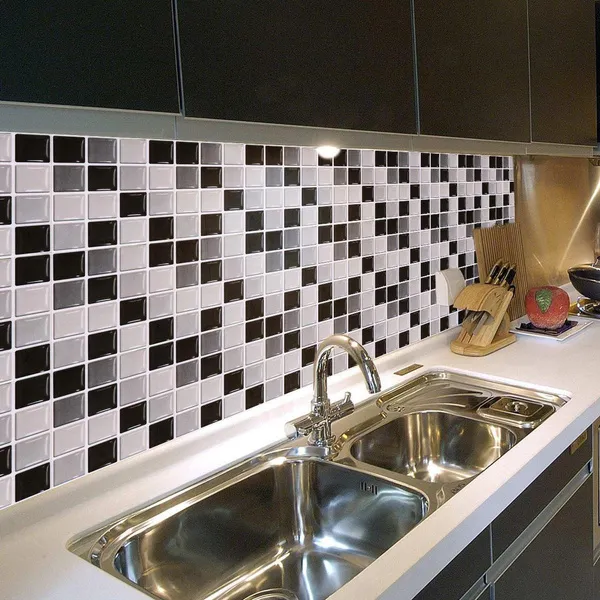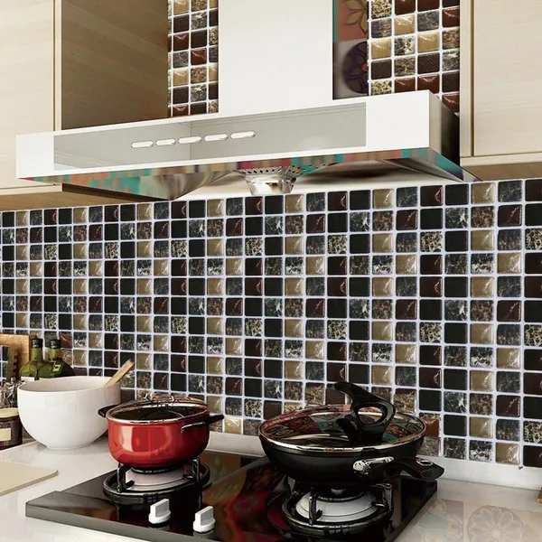 Product Description: Features: 30pcs mosaic wall stickers retro PVC waterproof tile glue household tile stickers kitchen bathroom furniture Size: 10cm x 10cm Material: PVC Package Includes: 20 x wall stickers