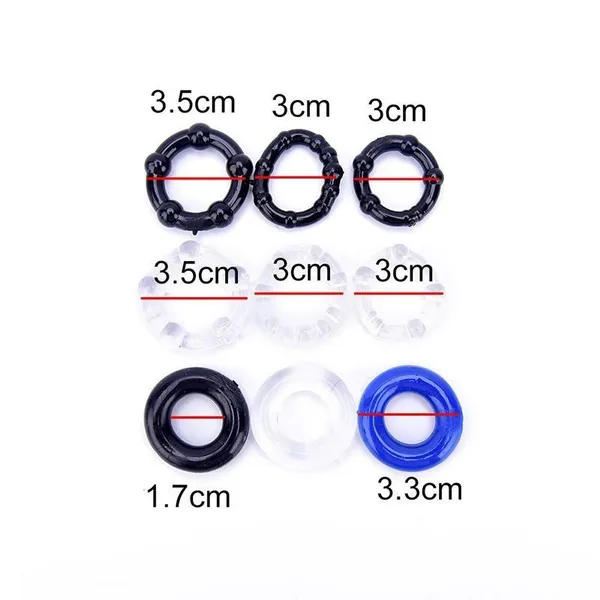 Descriptions 100% new and high quality Material: Soft rubber Color: As the picture show Size: As the picture show color: transparent, black, mix color type: 3 types Size: Elastic; 2.3cm/0.92inch, 2.15cm/0.86inch, 2.0cm/0.8inch Package: 3 X cocking ring