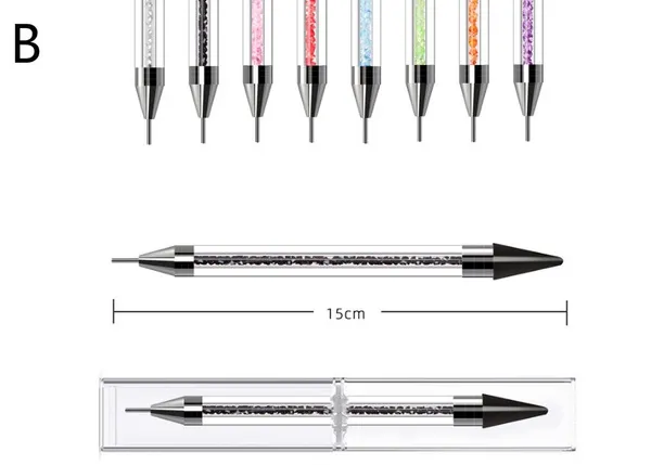 The pen designed for nail art dotting and picking rhinestones and other charms beads. Suitable for natural nails and false nails. Professional nail and nail art workers are very suitable for. The choice of professional manicurist, flowers, flowers and use when you pick up the drill. Suits the crowd nail DIY enthusiasts recommend Item Type: Dotting Pen Material: Plastic Color: Random Color Length: about 15cm Package Including: 1pc * Nail Art Dotting Pencil
