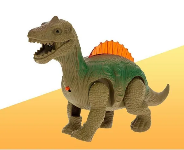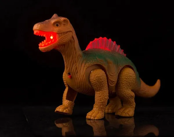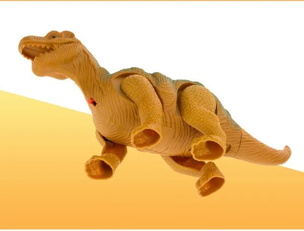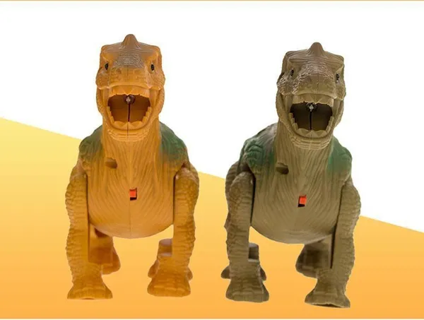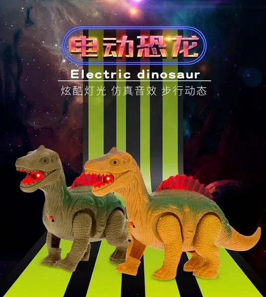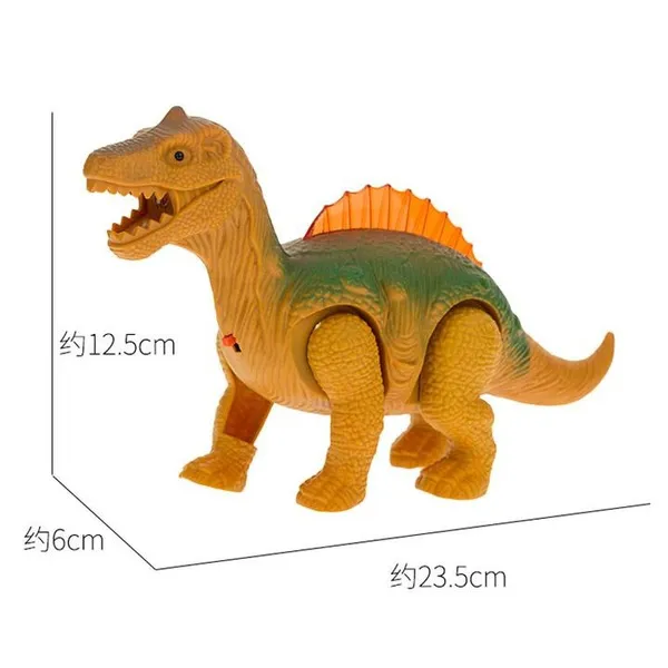 Material:ABS +electronic conponent Size:23.5*6*12.5cm Color:Random color Baterries requirement: 2*AA batteries(not included) Features: Cool light, can walking with sound Package :1pc *dinosaur toy