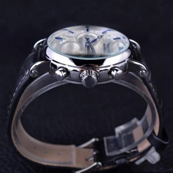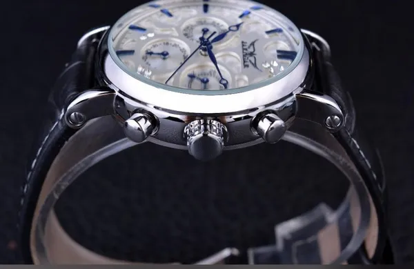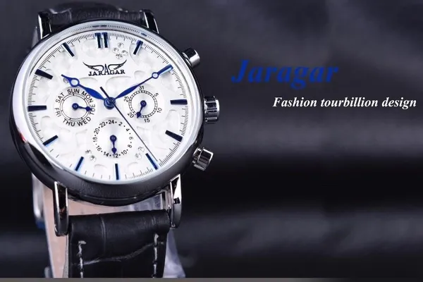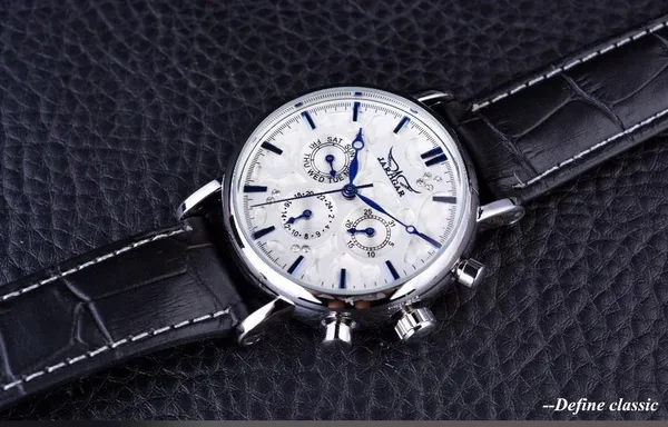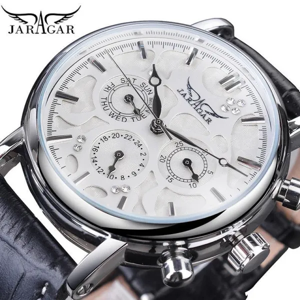 1. Stainless steel watch case makes the watch more durable. 2. High quality leather band gives you a new classic definition. 3. Three small dial display day. date & 24 Hour. 4. Automatic winding mechanical movement with date and day display lets you wear the watch anytime. Specification(approx): Diameter: 39mm Thickness: 15mm Length of watch band: 24.0cm Band width: 20mm Movement: Self Winding Mechanical Watch band: Genuine Leather Watch case: Stainless steel Package included: -1 * Watch -1 * Gift Box -1 * Manual Instruction Please give us a five-star feedback if you are satisfied with our products and service. Reminder: 1. Please peel all films off before wearing. 2. Please keep the watch away from magnet to avoid making the watch stop working. 3. Please wind up the watch before every usage.