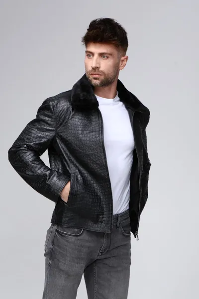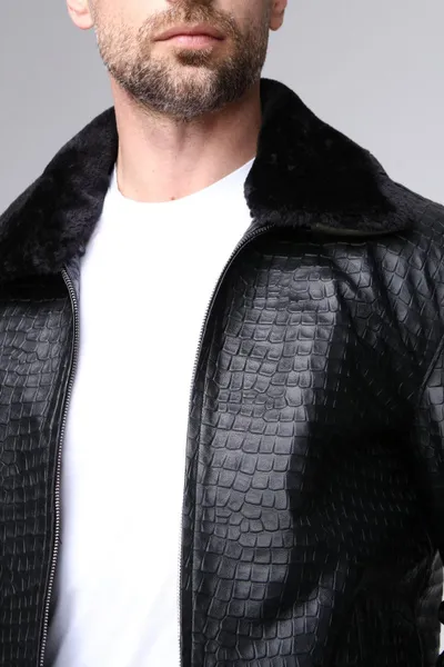 Men's Style Genuine Leather Jacket Real Leather Coat For Handsome Guys ||| Genuine Leather Crocodile Printed Coat.||| Material:Genuine Leather ||| Pattern:Regular ||| Color:Black ||| Size: XS, Bust: 104cm, Length: 67cm, Shoulders: 14.5cm, Sleeve: 65cm, Waist: 100cm ||| Size: S, Bust: 108cm, Length: 68cm, Shoulders: 15cm, Sleeve: 66cm, Waist: 104cm ||| Size: M, Bust: 112cm, Length: 69cm, Shoulders: 15.5cm, Sleeve: 67cm, Waist: 108cm ||| Size: L, Bust: 116cm, Length: 70cm, Shoulders: 16cm, Sleeve: 68cm, Waist: 112cm ||| Size: XL, Bust: 120cm, Length: 71cm, Shoulders: 16.5cm, Sleeve: 69cm, Waist: 116cm ||| Size: XXL, Bust: 124cm, Length: 72cm, Shoulders: 17cm, Sleeve: 70cm, Waist: 120cm ||| Size: XXXL, Bust: 128cm, Length: 73cm, Shoulders: 17.5cm, Sleeve: 71cm, Waist: 124cm ||| Size: 4XL, Bust: 132cm, Length: 74cm, Shoulders: 18cm, Sleeve: 72cm, Waist: 128cm