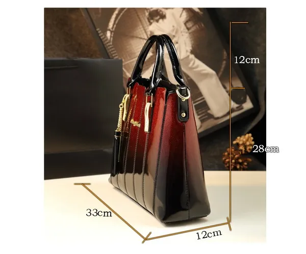 Applicable Gender :Women & Girl Bag Type: Handbag, Messenger bag, Totes Main material: Patent leather Lining material: Fabric Closure type: Zipper Measurement: 33*12 *28 cm Handle height: 12 cm Weight :1.2 kg Shoulder strap length :120cm can be adjusted Capacity: A4 paper can be placed in Suitable occasion: Go Shopping, Dating, Christmas Gift, Party, Evening, Gifts, etc. NOTE 1: There maybe little size deviation (1-2cm)from the real bags because we measure by hand. NOTE 2: As the shooting light, angles and computer displays, there may be few color differences. NOTE 3: Please look at the size carefully before order to make sure you will not be disappointed.