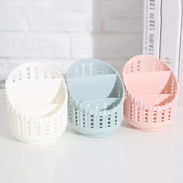 Office Desktop Grid Pen Holder Basket Pvc Hollow Cylinder Pen Storage Box Pencil Brush Pot Makeup Brush Container