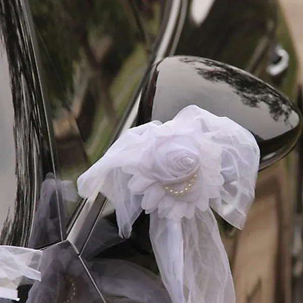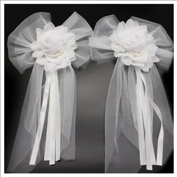 Material: polyester silk,pearl, yarn ribbon Total length:15.6 inches;Width:8.6 inches Perfect for wedding decoration. Package: 1pc