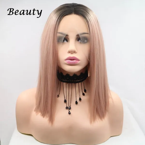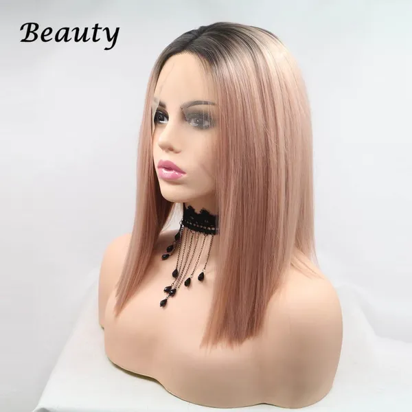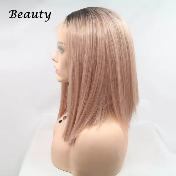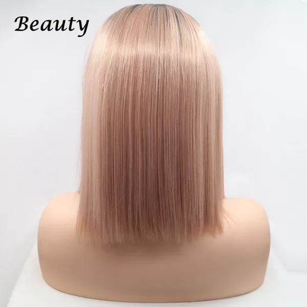 ombre black to pink rose gold bob wig Short straight Cut 14 inch wig for black and white women human and machine made Factory direct sales Cap size: 22.5 inch
