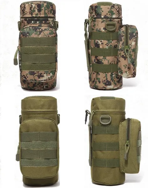 Features: Name: Outdoor kettle bag, molle kettle bag, accessory bag Applicable scenarios: outdoor sports, cycling sports Product category: Outdoor camouflage, military fan bag Applicable gender: both male and female Applicable age group: adult Size: diameter 10cm x height 28cm / 3.93x11.02inch. Material: 600D nylon fabric, 420D waterproof cloth, pearl cotton lining. Package include: 1xBag (without shoulder strap,without kettle) Function 1.Molle design, can be easily loaded onto other medium or large backpacks. 2. Can be equipped with 0.5--1L kettle, with a certain insulation function. 3. There are two bags, you can also install some small items in addition to the kettle. 4. There is a small module velcro on the front, which can be pasted as a logo. 5. The pouch has a front zipper pouch with MOLLE loops on the front. 6. It is designed to hold a bottle up to 10.5inch.