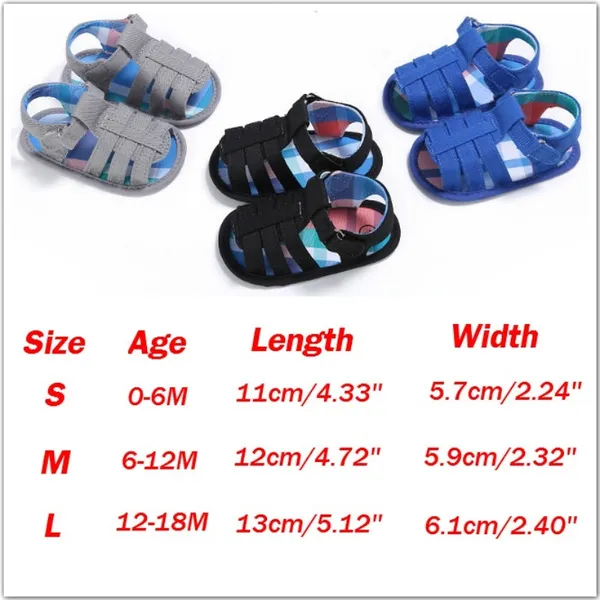 Material: Canvas Color: Black, White, Blue, Grey Package including: 1 Pair Of Shoes Size Age Length Width S---------0-6M---------11cm/4.33''------ 5.7cm/2.24'' M--------6-12M--------12cm/4.72''------5.9cm/2.32'' L--------12-18M------13cm/5.12''-------6.1cm/2.40''