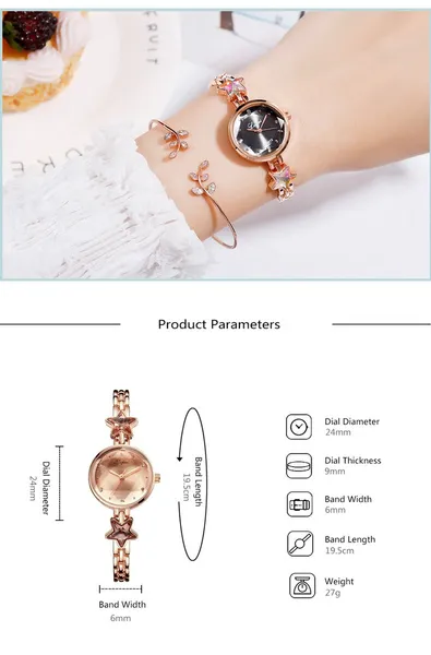 Movement: quartz movement Surface material: Glass material Material: Alloy Strap Material: Alloy Belt Width: 6mm Strap Length: 195mm (includes box) Case Thickness: 9mm Case Diameter: 24mm Package includes 27g 1 x watch