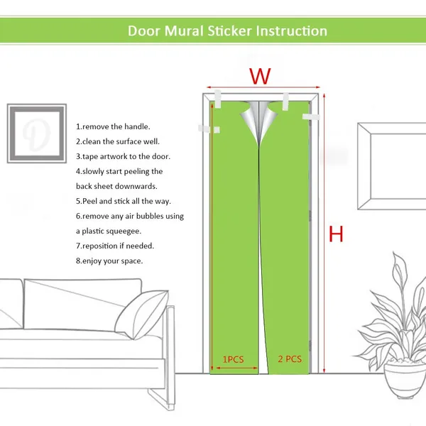 Information The product you received contains 2 parts.This item is a DIY product.It should be put together by yourself. Quantity: 2 pcs Material: PVC Size:85cm*215cm/2.79ft*7.05ft/Set(1Set = 2 pieces of 42.5x215cm). Package Quantity:2 PCS/Set Instruction: 1.Remove the handle 2.Clean the surface well 3.Tape artwork to the door 4.Slowly start peeling the back sheet downwards 5.Peel and stick all the way 6.Remove any air bubbles using a plastic squeegee 7.Reposition if needed 8.Enjoy your space Feature: 1. Anti-mildew, moth, anti-bacterial, anti-fouling, landscaping decoration, moisture, anti-static. 2. The product is only suitable for smooth media,such as Glass,metal,dust-free walls and so on. Notice: 1.Please allow 1-3mm error due to manual measurement. 2.The colors may have different as the difference display,pls understand.