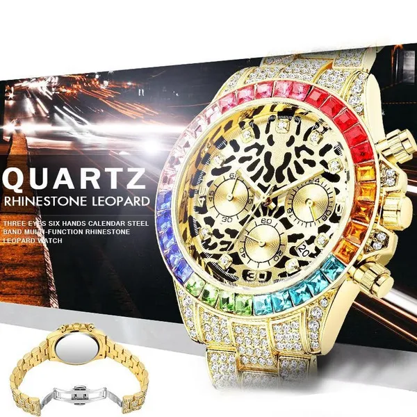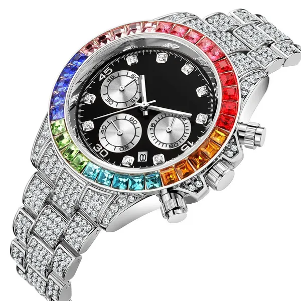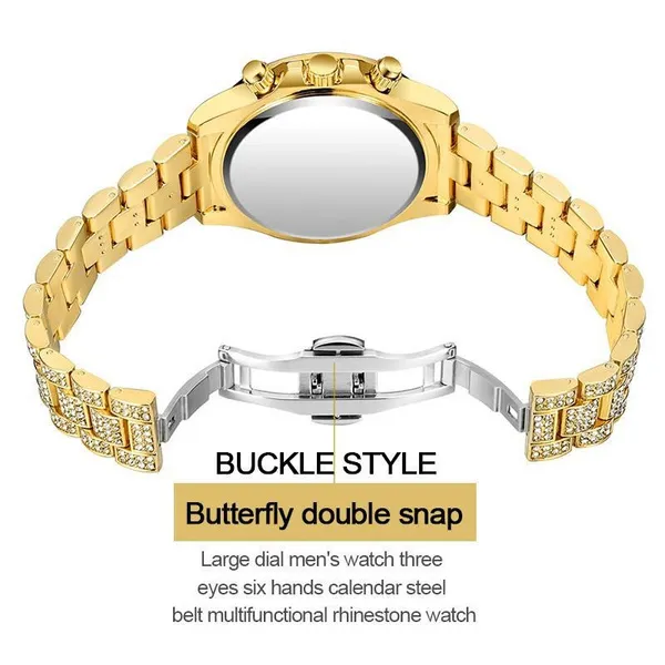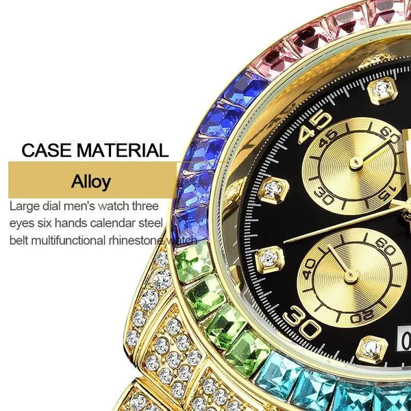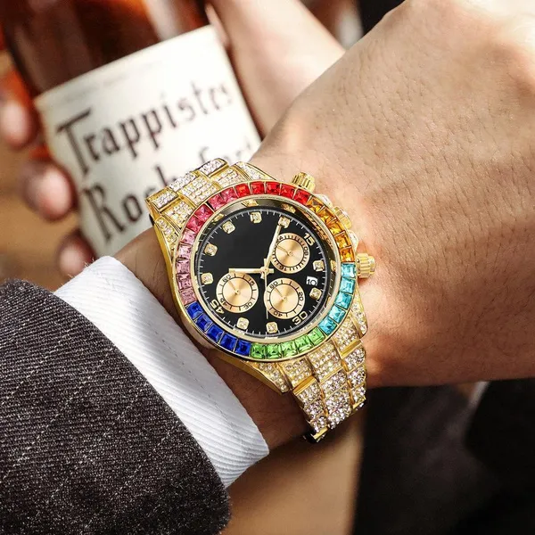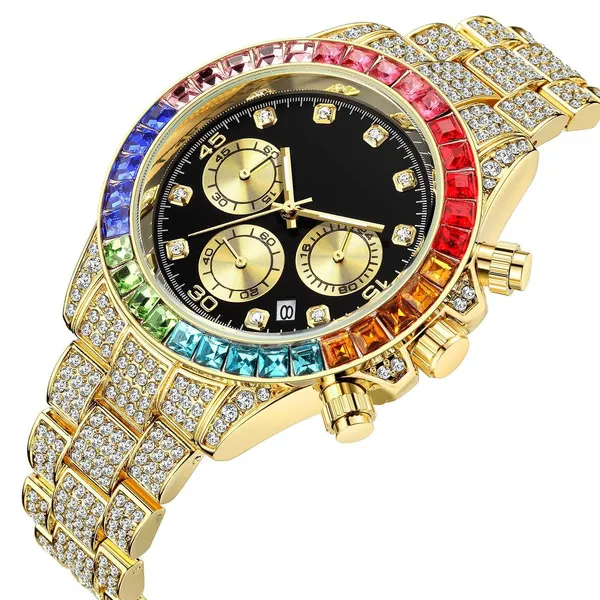 Fashion Iced Out Watch Men Chronograph Sport Diamond Watches Luxury Steel Gold Mens Wristwatch Relogio Masculino