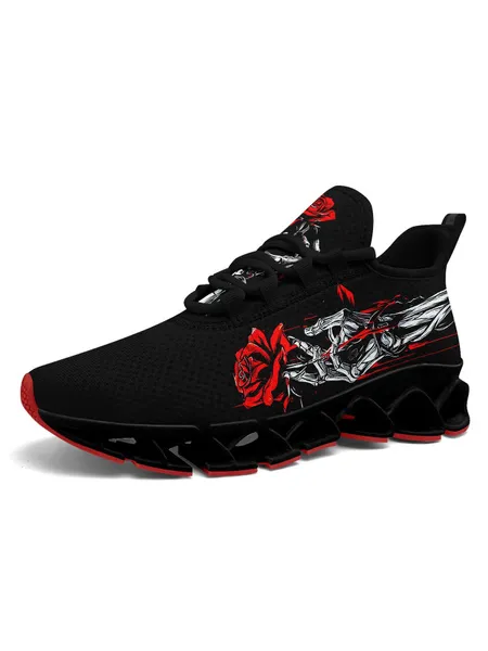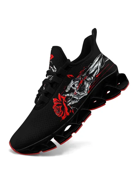 Men's Fashionable Skull Print Lace Up Walking Shoes, Boy Casual Comfortable Non-slip Shock Absorption Running Sports Shoes, Comfy Trendy Shoes for Men, Footwear Sneaker Shoes Trending Streetwear Shoes