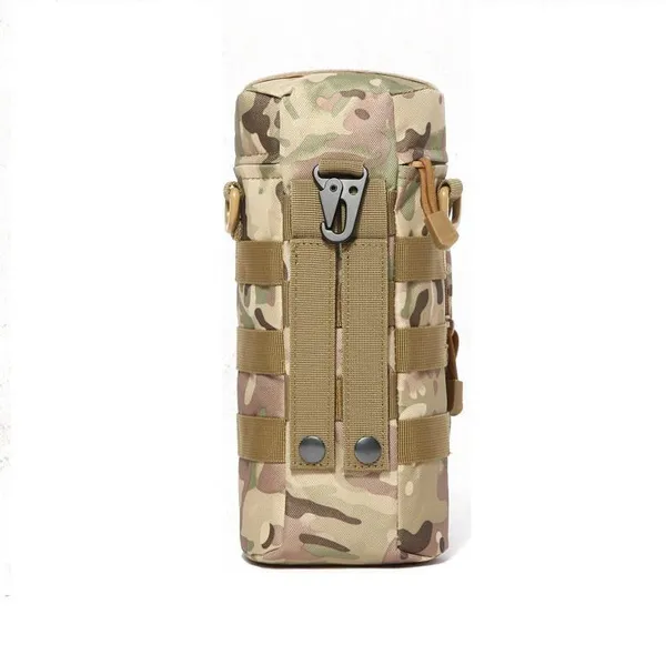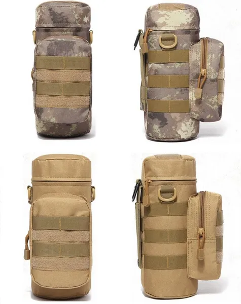 Features: Name: Outdoor kettle bag, molle kettle bag, accessory bag Applicable scenarios: outdoor sports, cycling sports Product category: Outdoor camouflage, military fan bag Applicable gender: both male and female Applicable age group: adult Size: diameter 10cm x height 28cm / 3.93x11.02inch. Material: 600D nylon fabric, 420D waterproof cloth, pearl cotton lining. Package include: 1xBag (without shoulder strap,without kettle) Function 1.Molle design, can be easily loaded onto other medium or large backpacks. 2. Can be equipped with 0.5--1L kettle, with a certain insulation function. 3. There are two bags, you can also install some small items in addition to the kettle. 4. There is a small module velcro on the front, which can be pasted as a logo. 5. The pouch has a front zipper pouch with MOLLE loops on the front. 6. It is designed to hold a bottle up to 10.5inch.